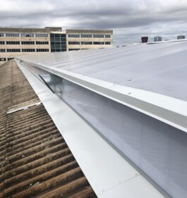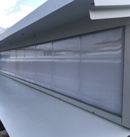 Canvi de coberta i façana de vidres, per una nova coberta i façana de translúcits de policarbonat amb sistemes Arcoplus, tant en façana com en coberta, amb protecció als raigs UV i classificació al foc Bs1d0. Totalment instal-lat i rematat.